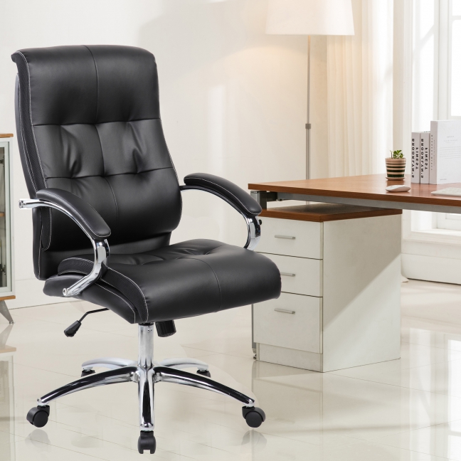 1. This Executive chair upholstered in bonded leather which provide ultimate comfort sitting experience.